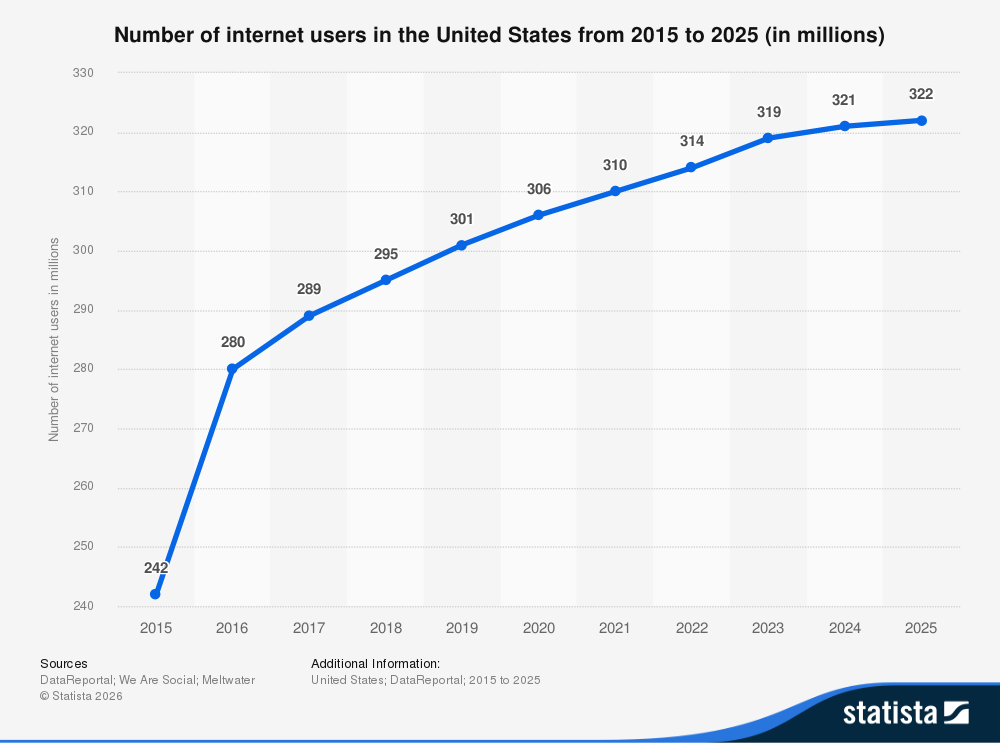 The US has the third highest online population in the world after China and India with approximately 322 million people accessing the internet as of February 2025. It continues to grow with the accessibility of broadband internet and mobile phones.…